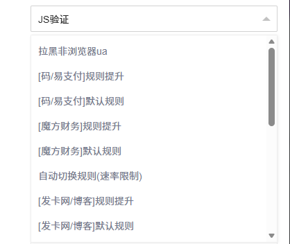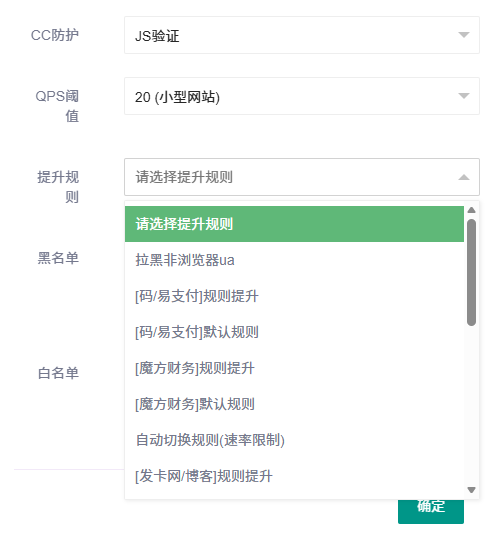6.提升规则:在触发QPS阈值时,自动切换到目标规则组,该类规则组往往具有较强的人机验证能力。