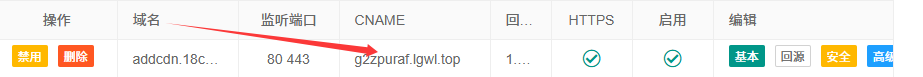 在网站完成CDN创建后,将对应域名的CNAME地址复制,前往DNS控制台处解析。如下图,你已经完成了CDN的解析与添加。