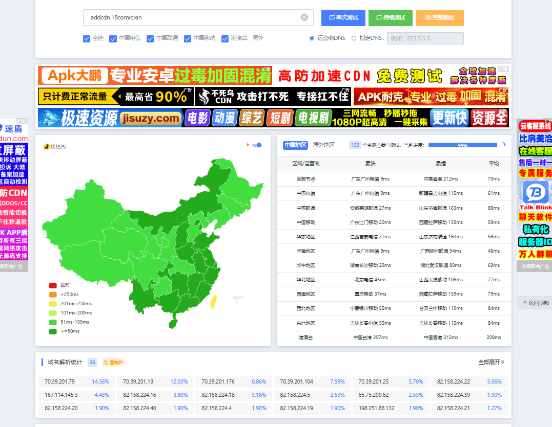 4.生效检测:在完成上述操作后,前往ITDOG进行TCPPING,即可判断自己的解析是否已经生效。