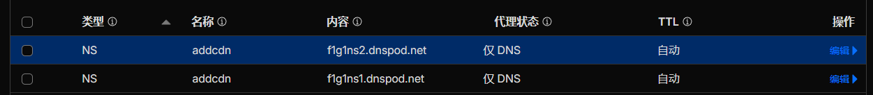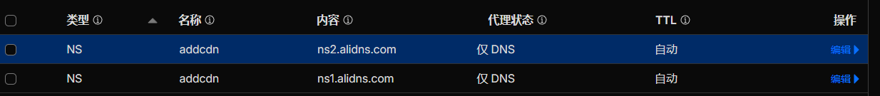 2.添加NS解析,如图所示。